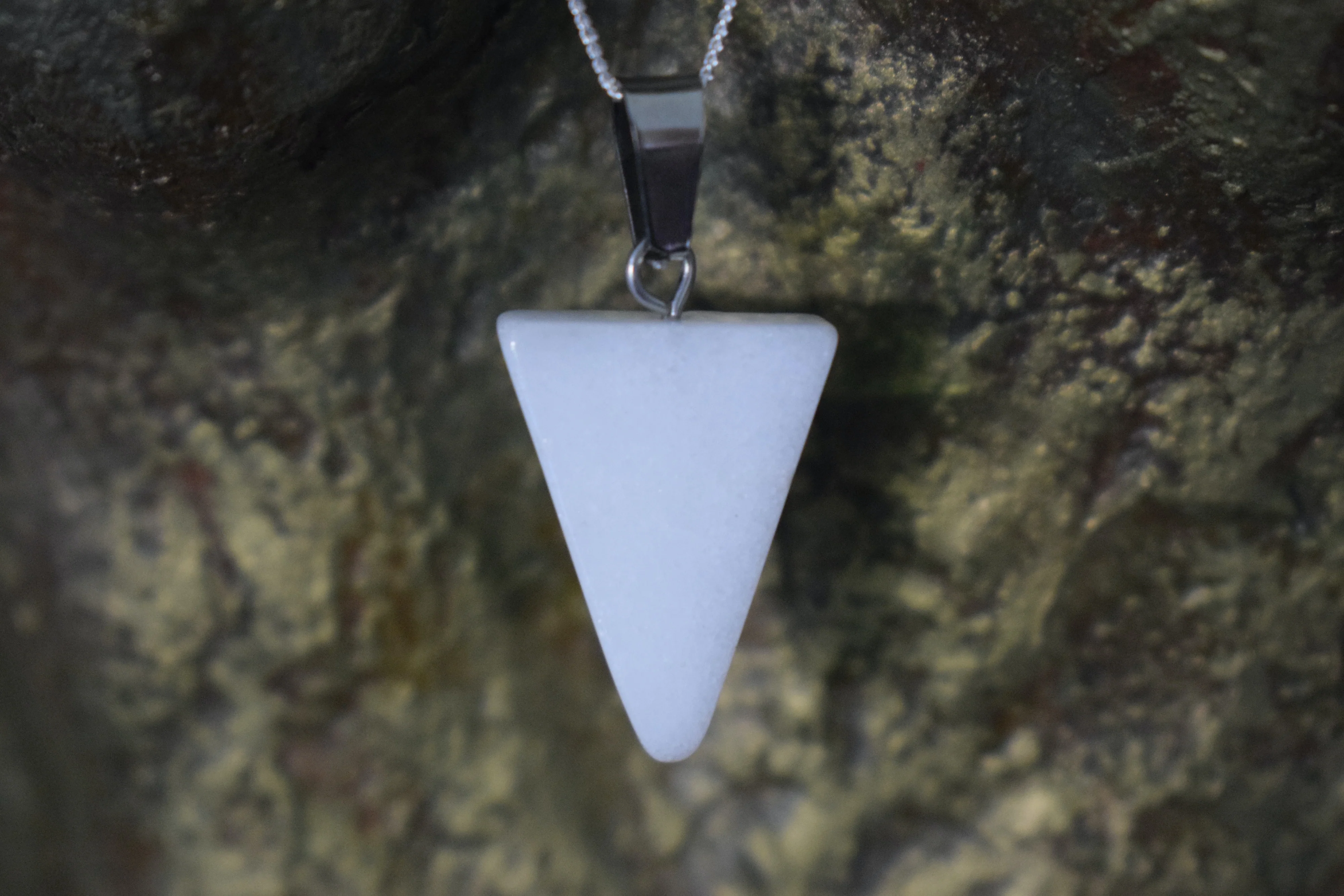 This beautiful white quartz pendant sits on a sterling silver chain. The metal silver is the metal of the Moon. It's a feminine metal that's caring, loving and protecting. It is also closely connected with the Fairy Folk or the Good Neighbours because they dance by the Moon and honour her phases.